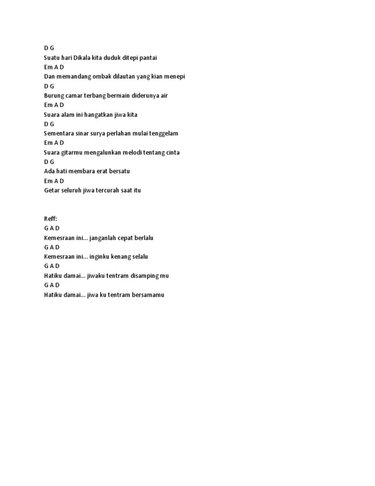 Chord Kemesraan suatu hari dikala kita duduk ditepi pantai dan …