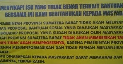 Pemprov Tak Akan Layani Proposal Bansos Masyarakat | BentengSumbar.com