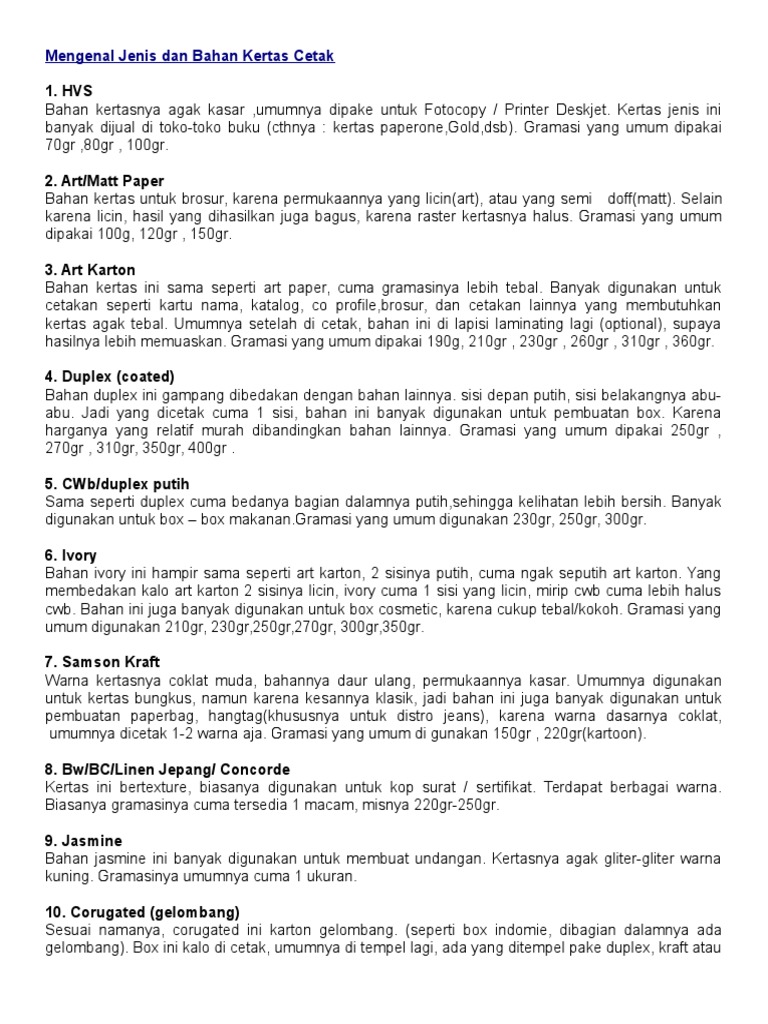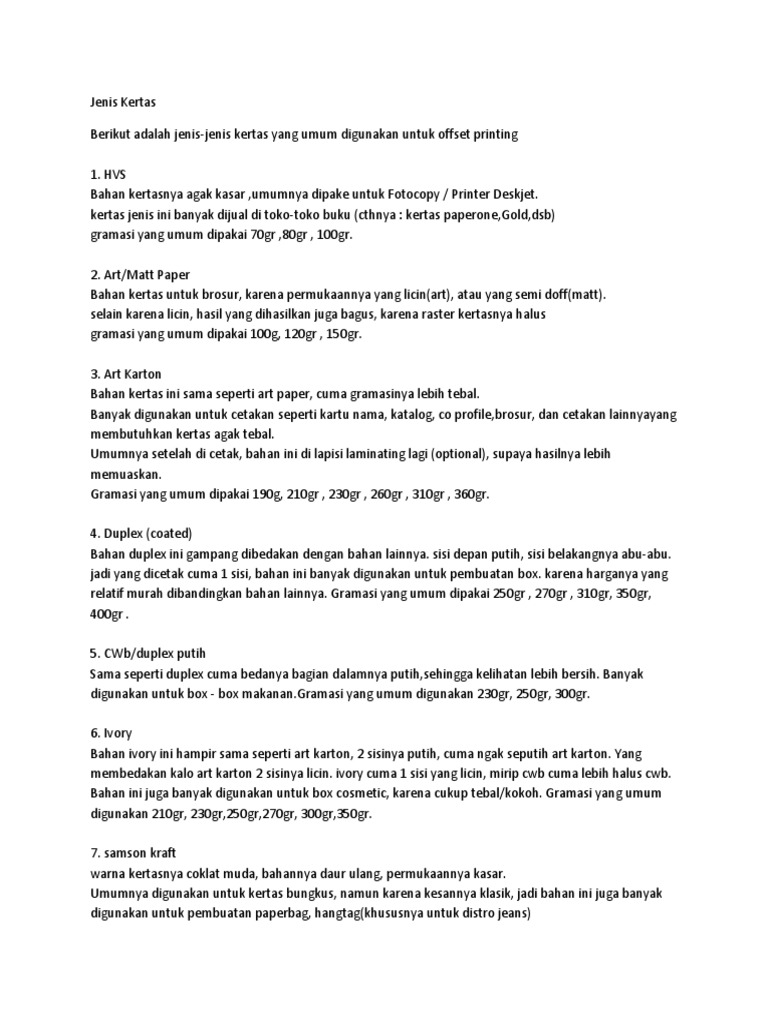 8 Jenis Kertas Yang Sering Digunakan Dalam Percetakan / Printing |