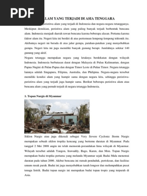 BENCANA_ALAM_DI_ASIA_TENGGARA.docx - BENCANA ALAM DI ASIA TENGGARA 1 Topan Nargis di Myanmar Topan nargis membawa angin kencang dengan kecepatan hingga | Course Hero