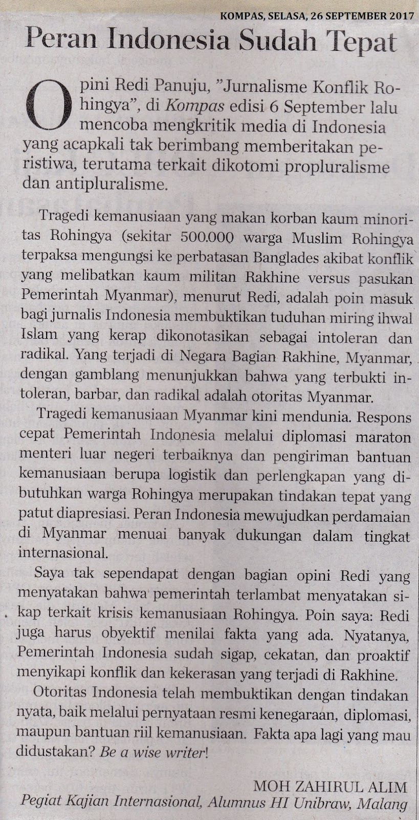 Kliping Opini Peran Indonesia Sudah Tepat | Paradigma Bintang