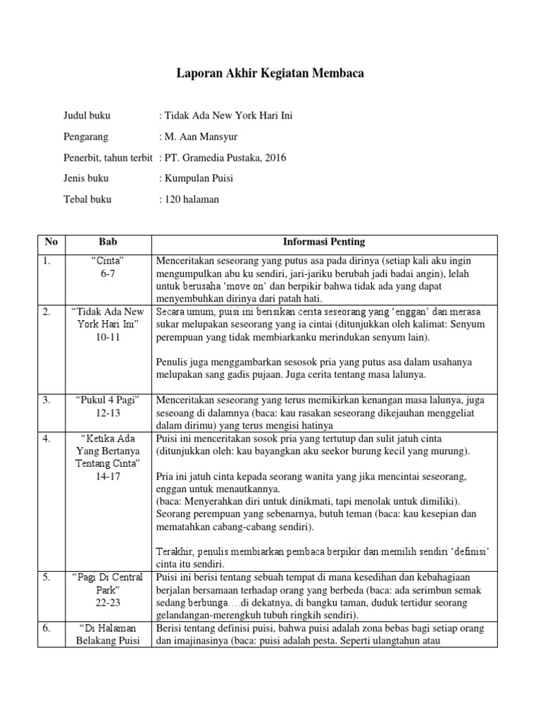 DOC) LAPORAN BACAAN BUKU MEMBACA SASTRA : MELANI BUDIATA | Binti Daryansari - Academia.edu