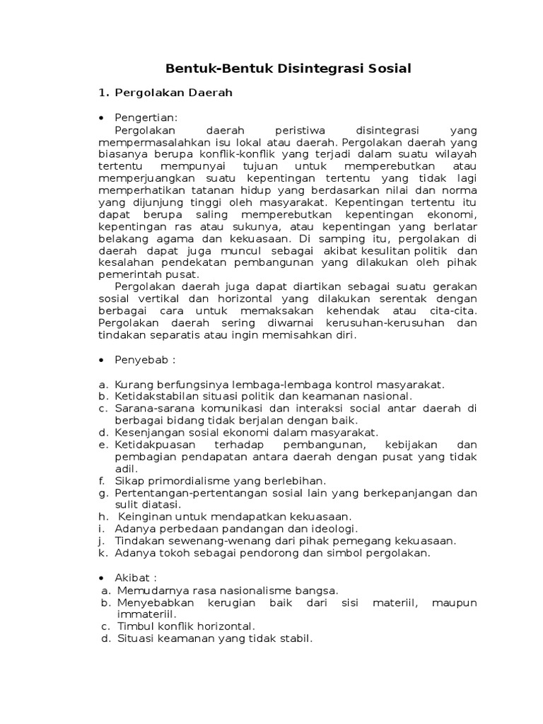Contoh Perubahan Sosial Di Masyarakat Yang Menyebabkan Disintegrasi Sosial - Berbagai Sebab