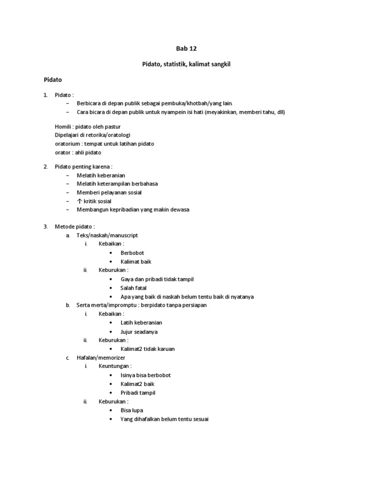 BAHASA INDONESIA Pidato, Statistik, Kalimat Sangkil