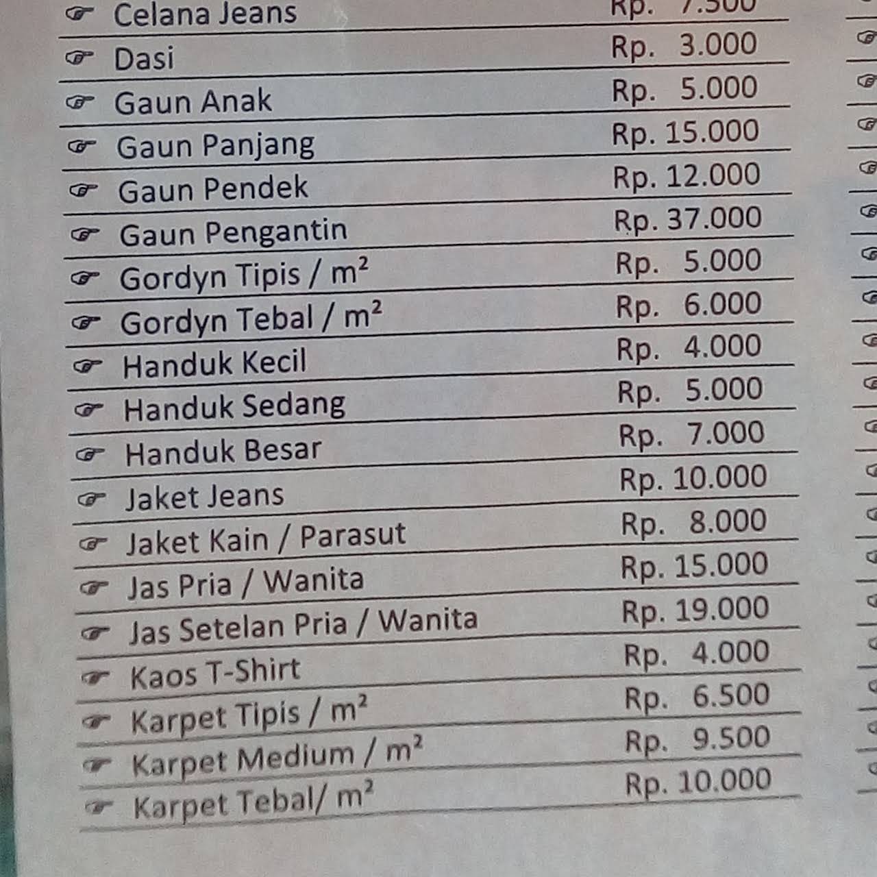 Daftar Harga Laundry & Dry Clean