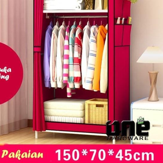Jual lemari rak baju pakaian kain portable yang bisa bongkar pasang kuat ukuran kecil mini single 1 | Shopee Indonesia