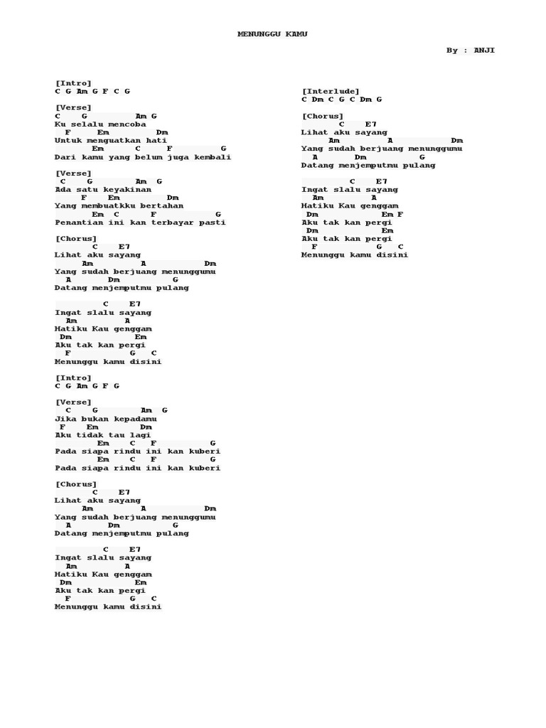Lirik dan Chord Kunci Gitar Menunggu Kamu - Anji: Lihat Aku Sayang …