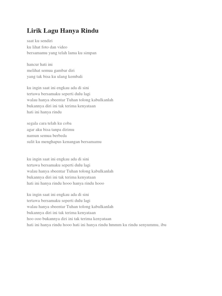 Lagu Lirik Hanya Rindu