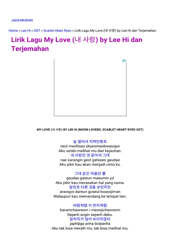 Lirik Lagu My Love Beserta Artinya