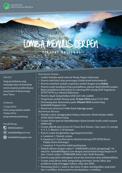 Lomba Menulis Cerpen Tingkat Nasional Komunitas Banyuwangi Berdaya (KBB) DL Juni 2016 | Info Absurditas Kata