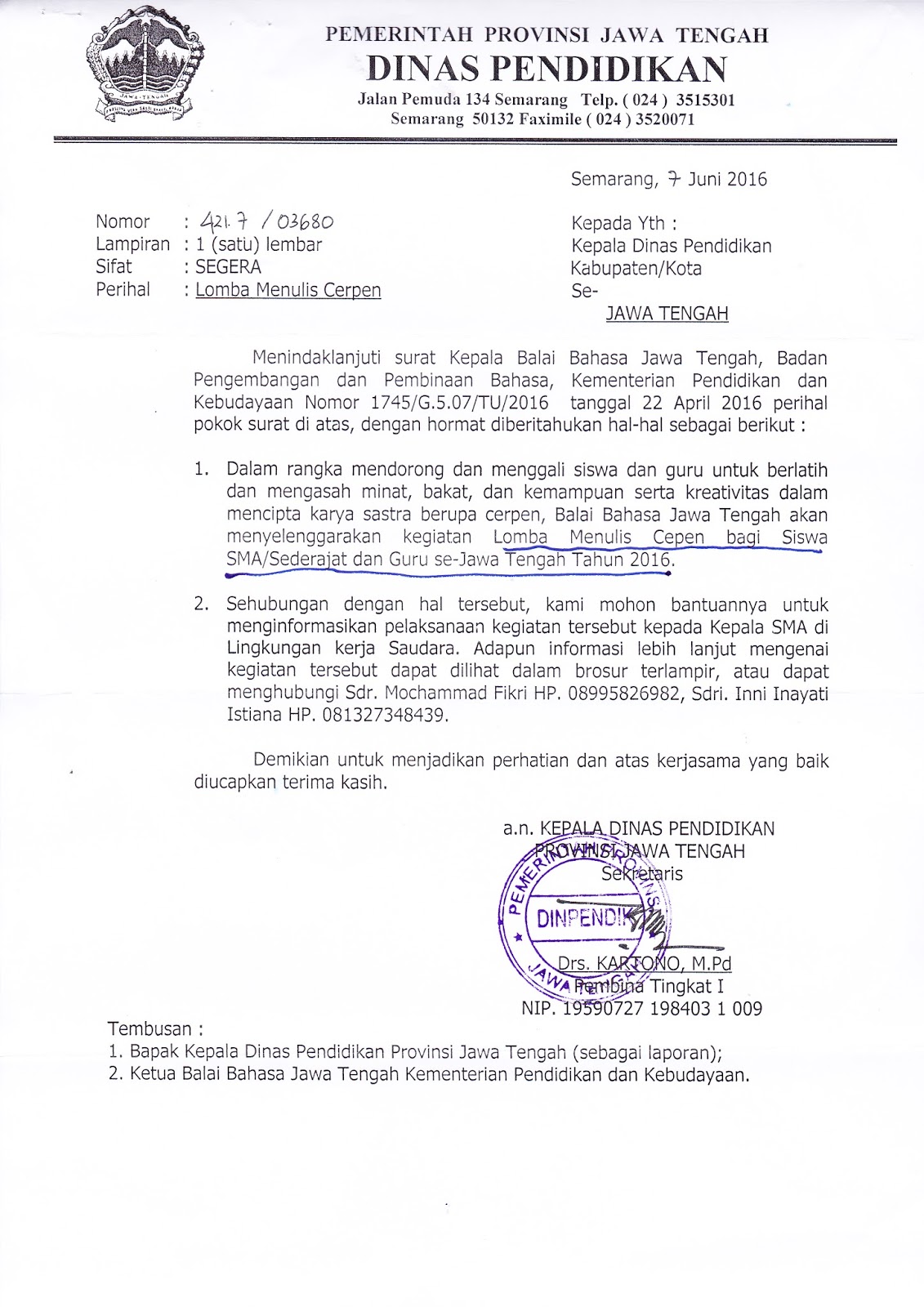 INFO SMA SMK KABUPATEN BOYOLALI: LOMBA MENULIS CERPEN BALAI BAHASA JAWA TENGAH 2016