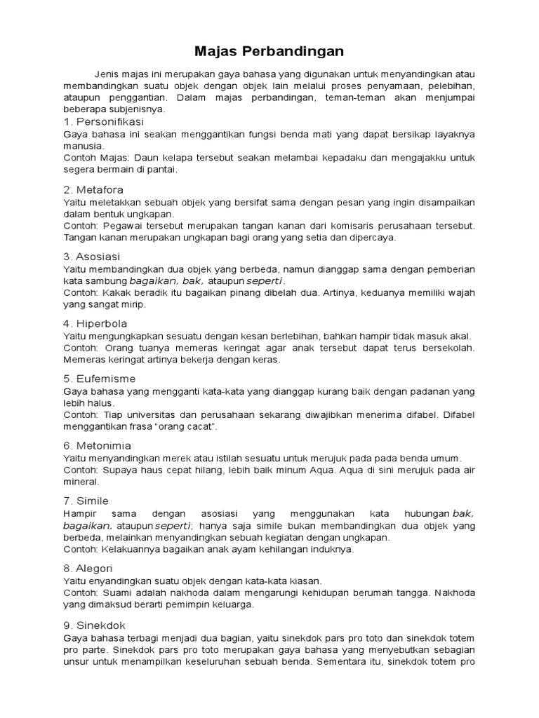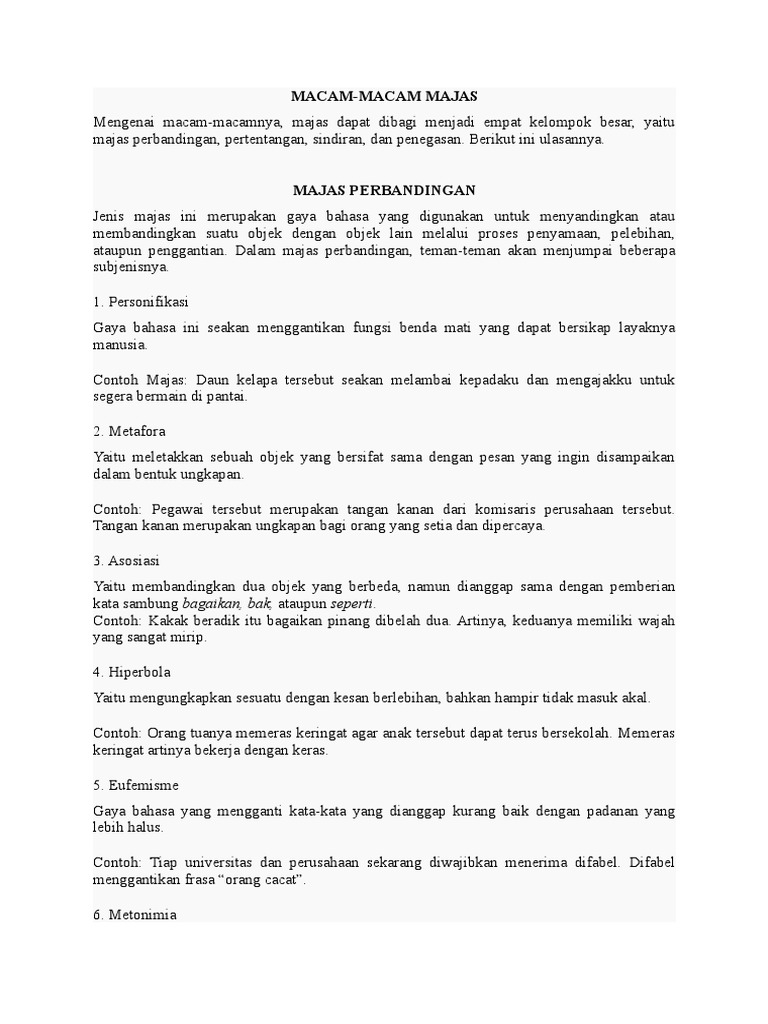 Macam-Macam Majas Lengkap dengan Contohnya - Gasbanter Journal