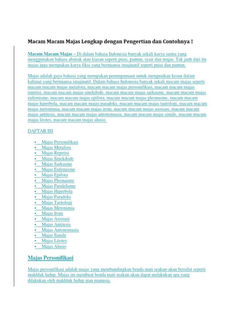 Macam-Macam Majas Lengkap dengan Contohnya - Gasbanter Journal