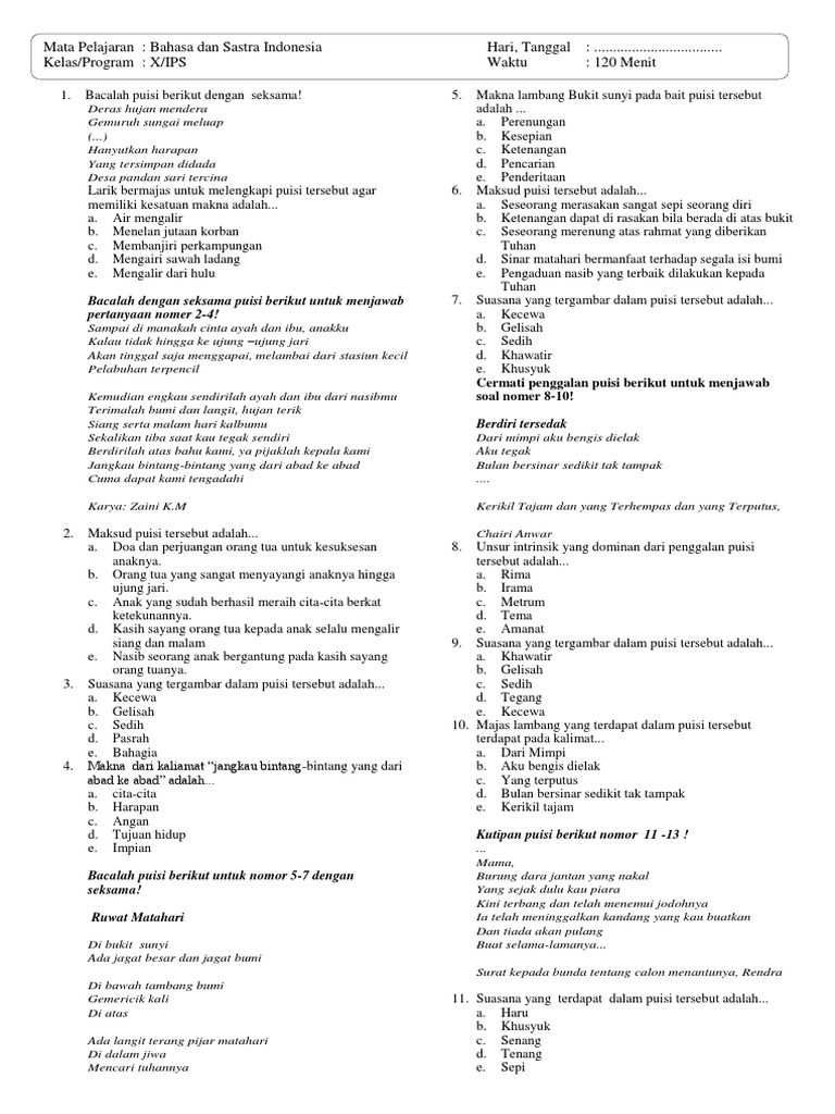 Soal PAT Bhs Dan Sastra Indonesia Kelas X 2019 - Websiteedukasi.com