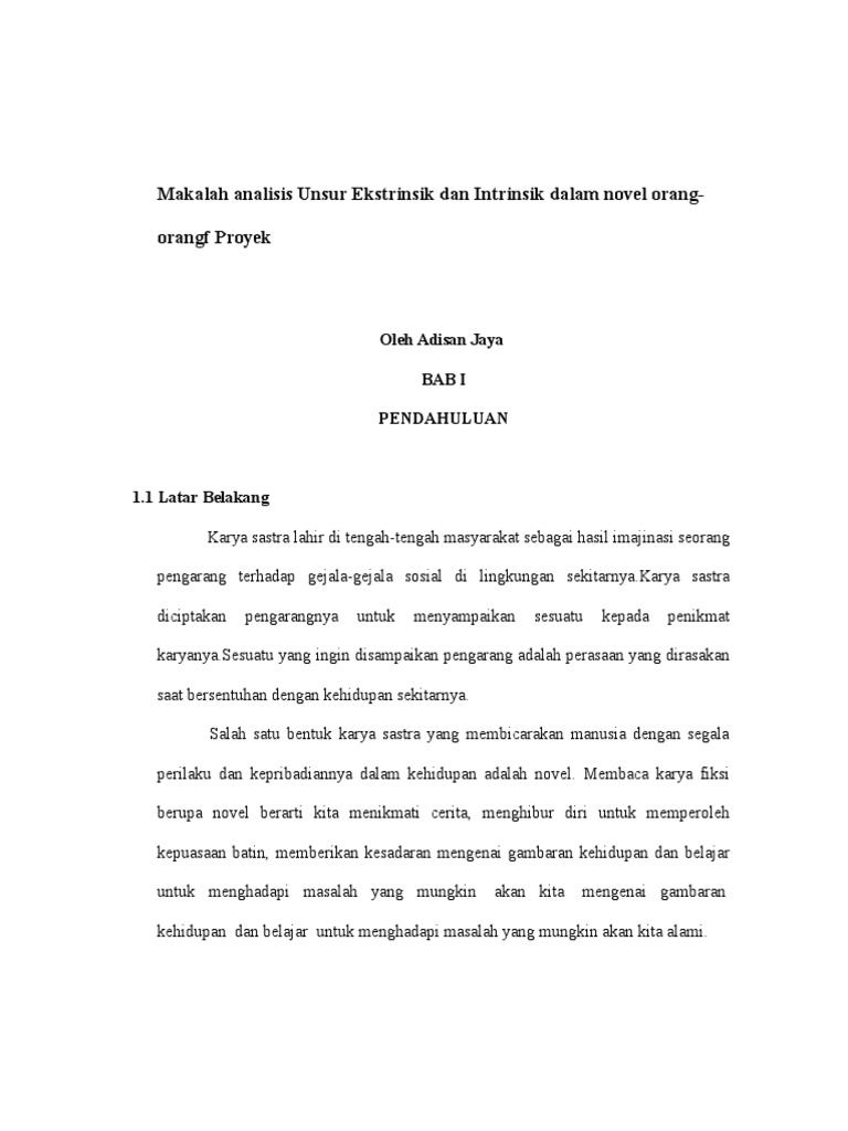 Makalah Analisis Unsur Ekstrinsik Dan Intrinsik Dalam Novel Orang Proyek