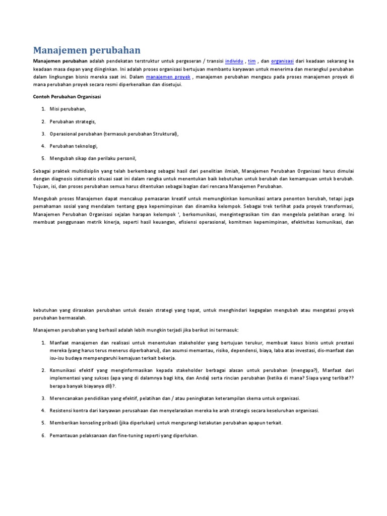 Bahan Kuliah : Manajamen Perubahan | | BAHAN KULIAH | MAKALAH …