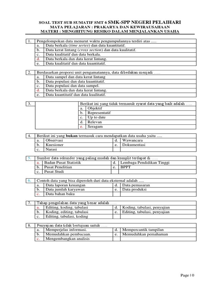 02 Soal Menghitung Resiko Menjalankan Usaha