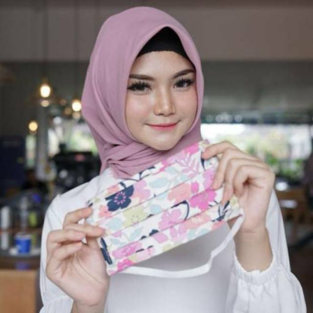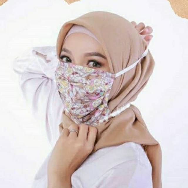 Masker Kain Hijab Motif Tali Karet Headloop - Masker Mulut Motif …