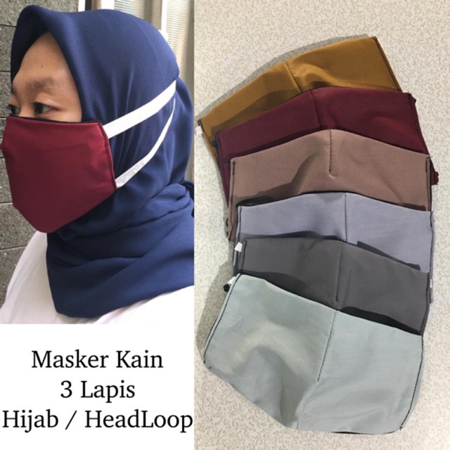 Masker Kain 3 lapis / masker hijab kain 3 ply / masker hijab kain …