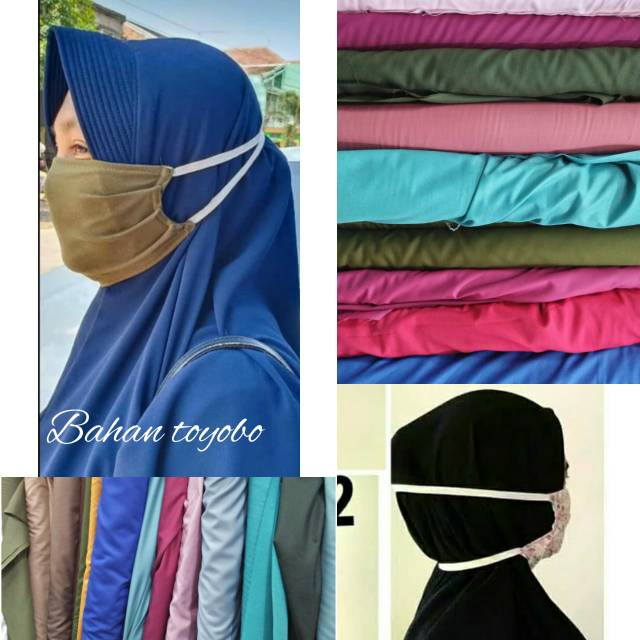 Masker kain hijab serut bahan toyobo karet belakang | Shopee Indonesia