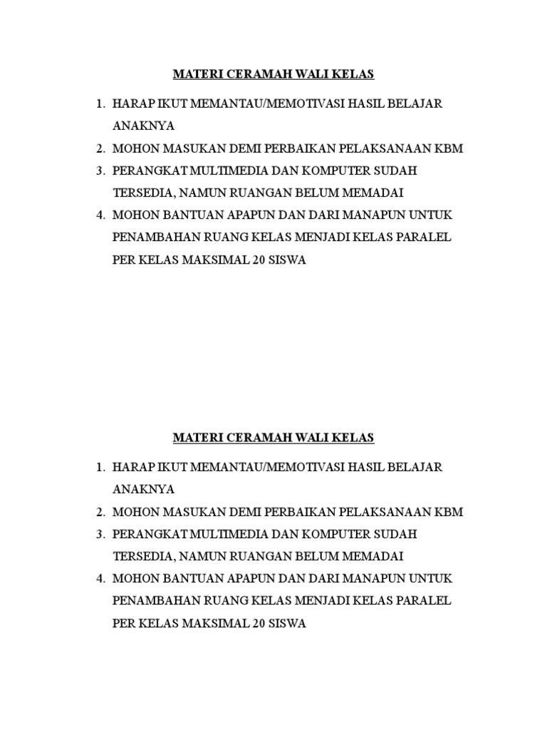 Materi Ceramah Wali Kelas