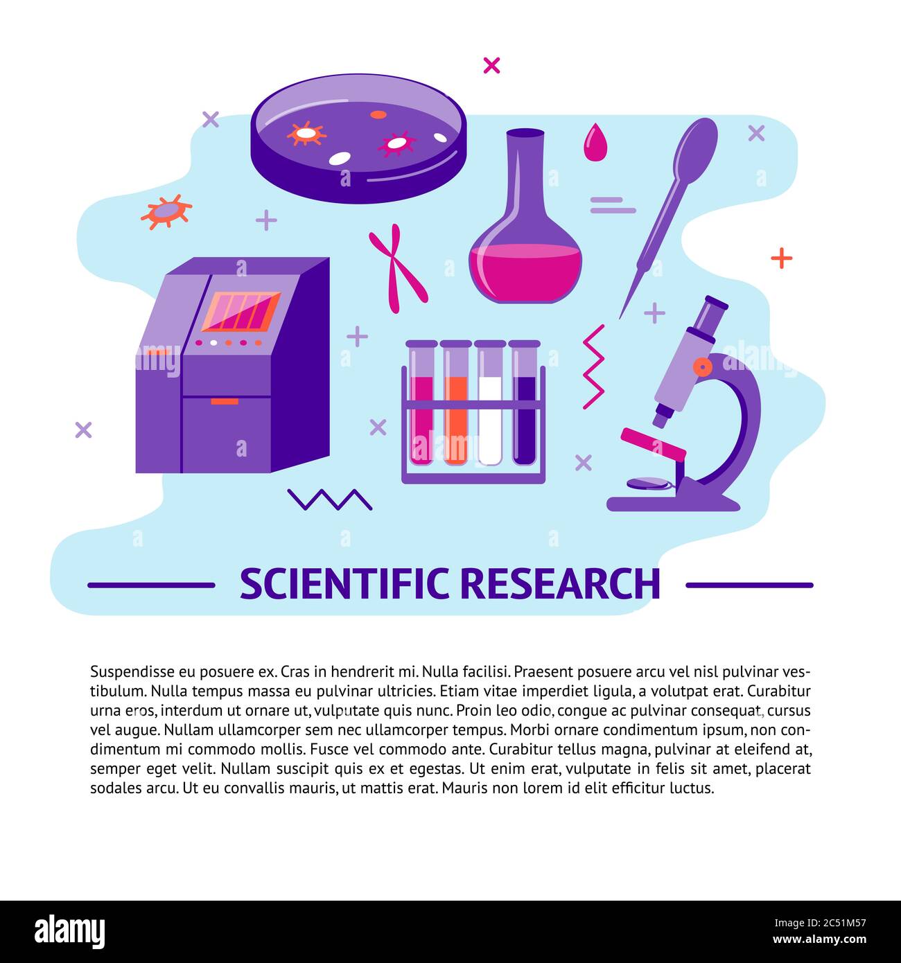 Medical research banner or poster template in flat style. Scientific laboratory equipment symbols. Medicine poster illustration with place for text Stock Vector Image & Art - Alamy