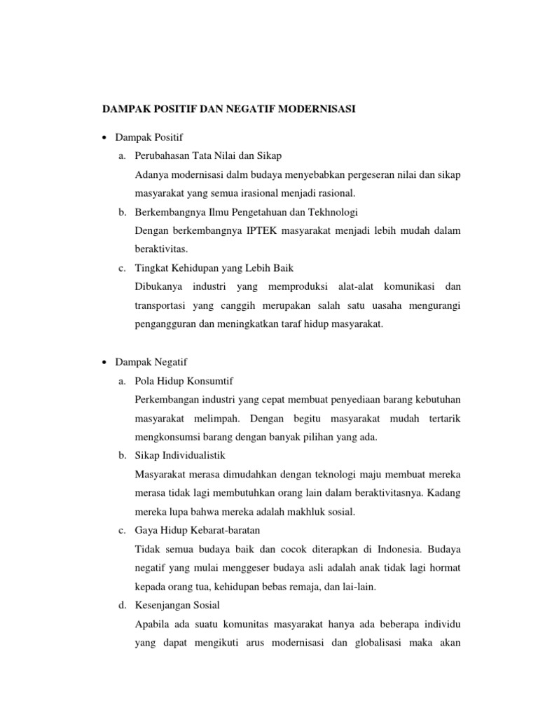 Dampak Positif dan Negatif Perubahan Sosial – Teras Sos 28