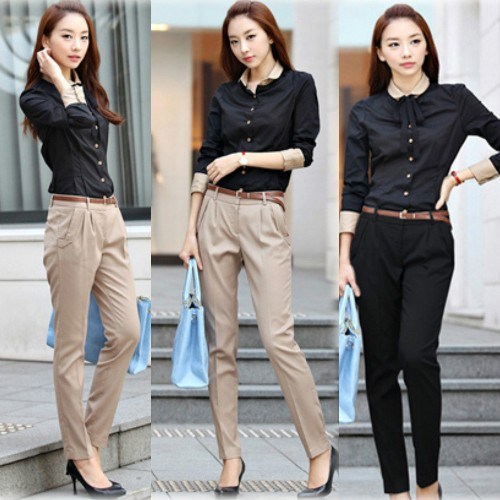 Celana Pensil Kain Wanita Setelan Atasan Katun DA396