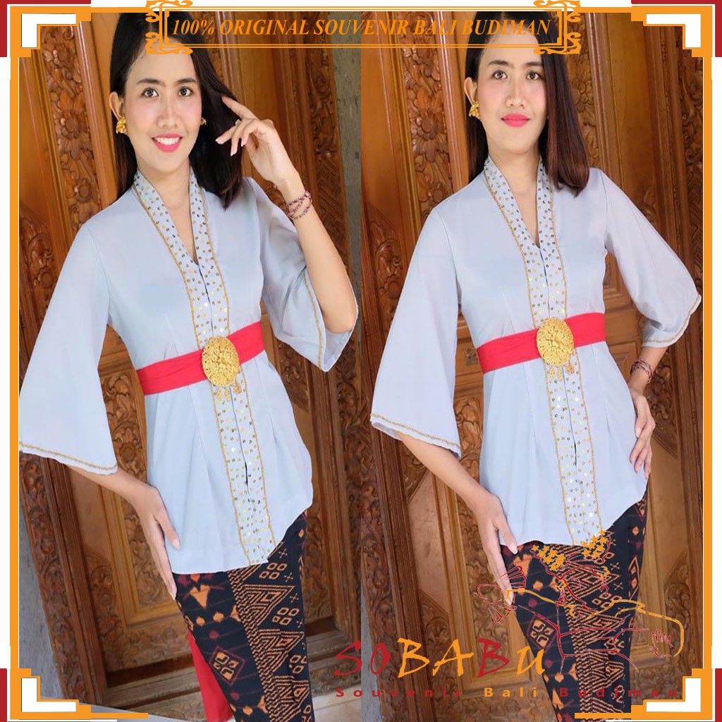COD] Kebaya Modern Bali Mostcref Lonceng Payet Abu Pink Putih Hitam Biru | Shopee Indonesia