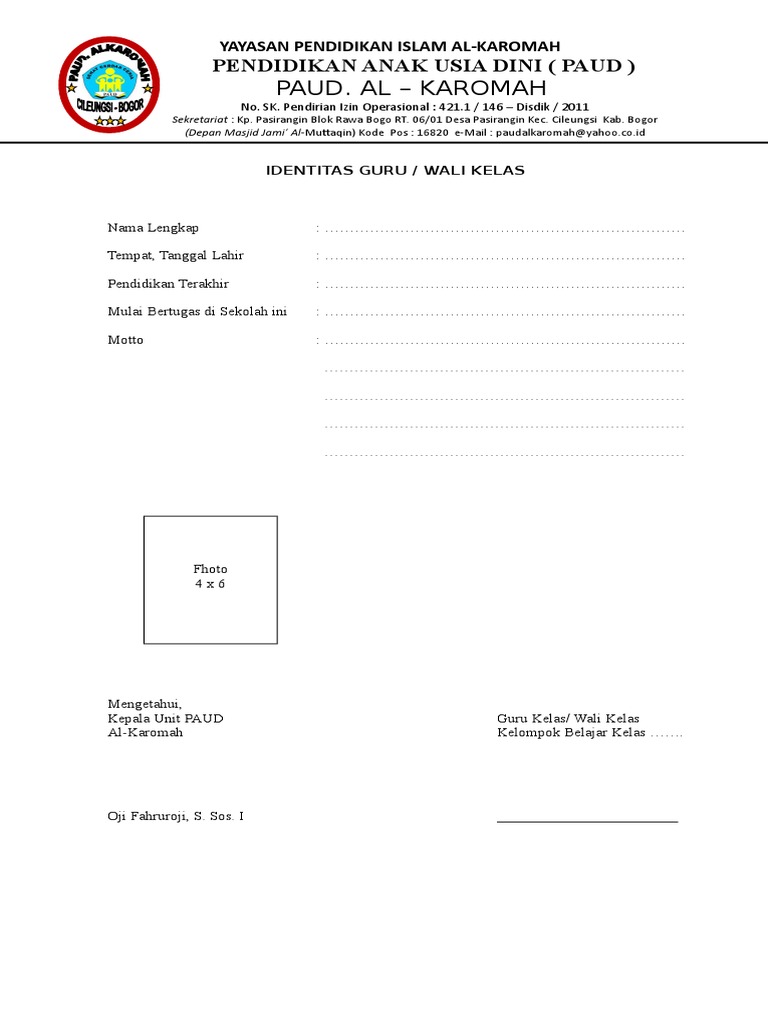 Paud. Al Karomah: Pendidikan Anak Usia Dini ( Paud )