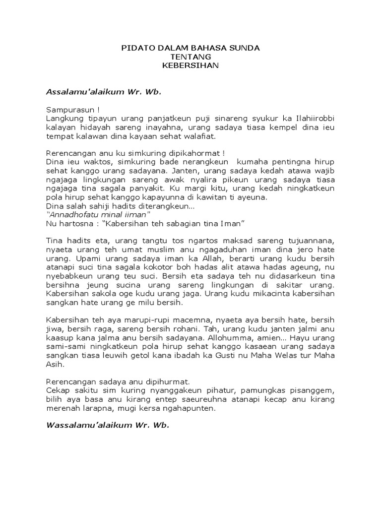 Contoh Naskah Pidato Bahasa Sunda Tentang Kebersihan - Contoh Naskah