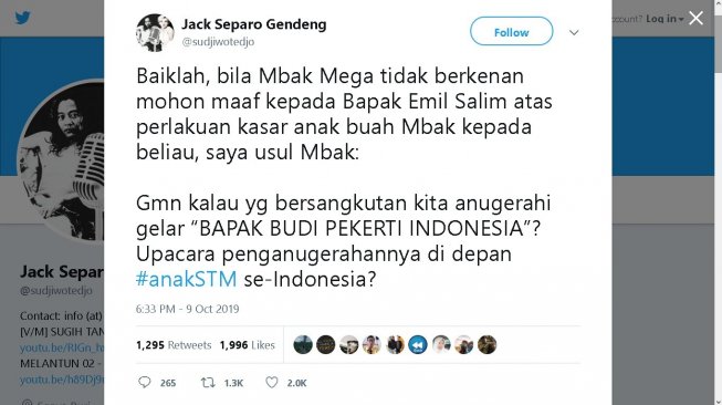 Sujiwo Tejo Suruh Megawati Minta Maaf karena Sikap Tak Sopan Arteria Dahlan