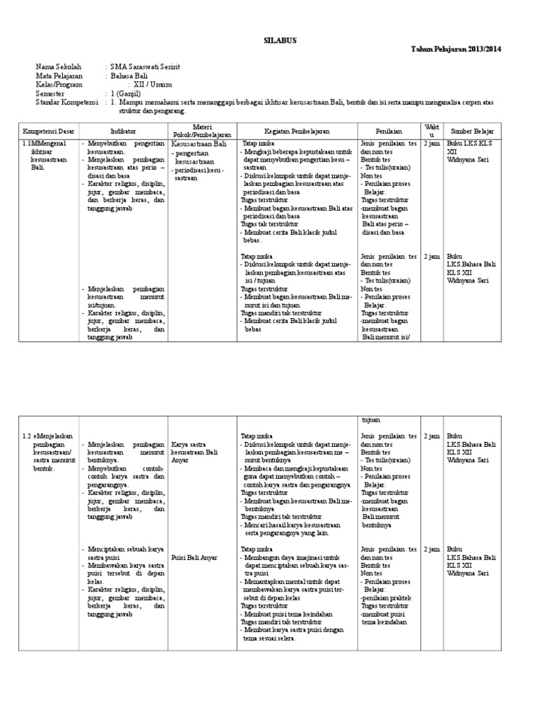 Silabus Bahasa Bali Sd Kurikulum 2013 - Guru Ilmu Sosial