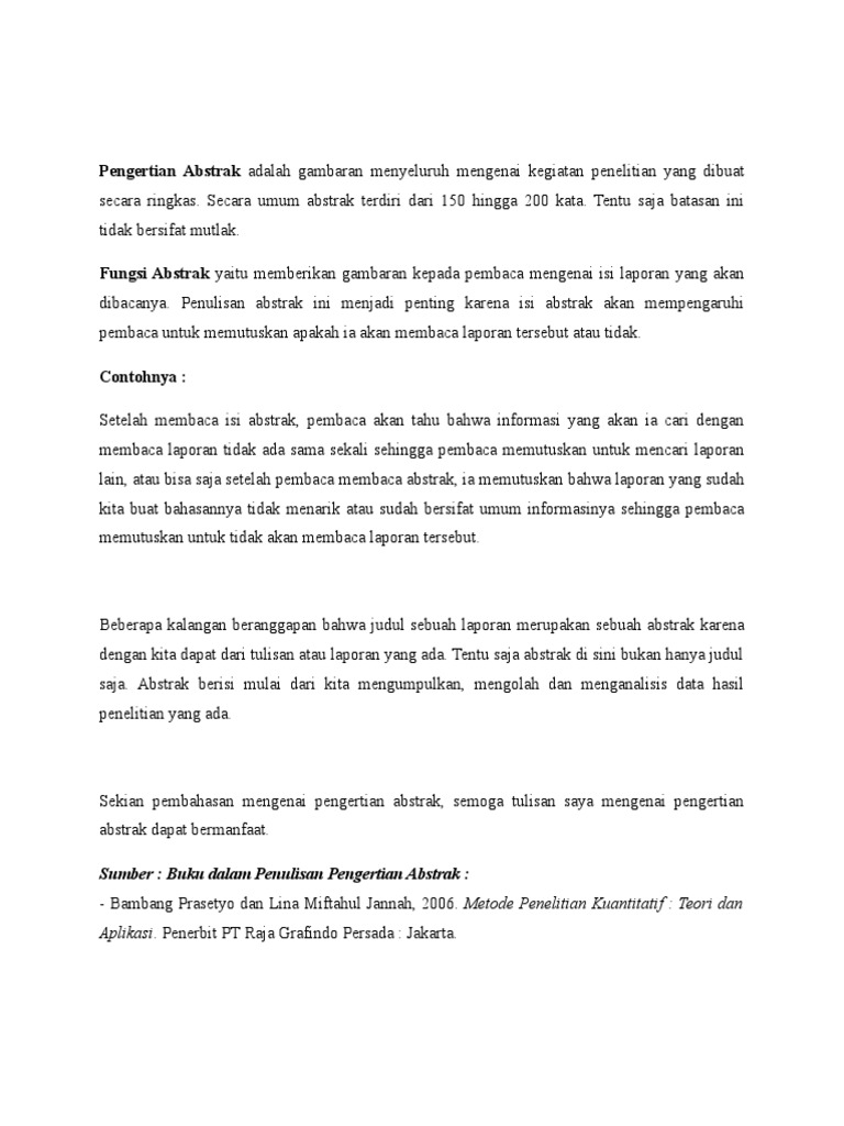 Pengertian Abstrak adalah gambaran menyeluruh mengenai kegiatan penelitian yang dibuat