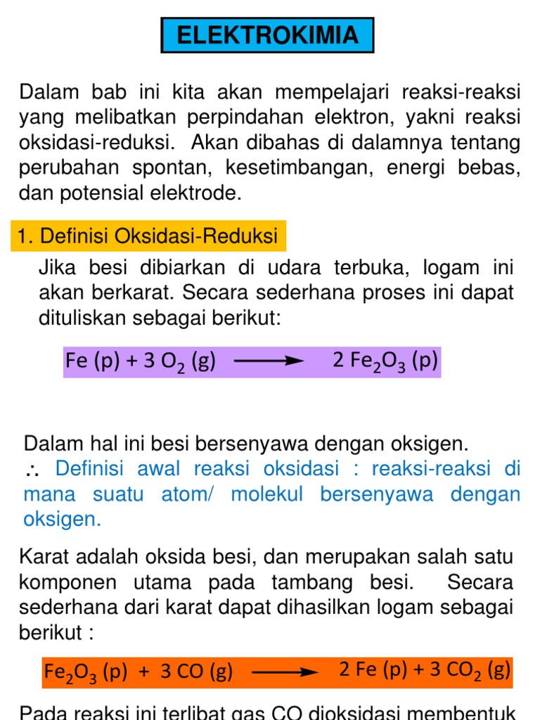 Reaksi Redoks dan Elektrokimia Pengertian