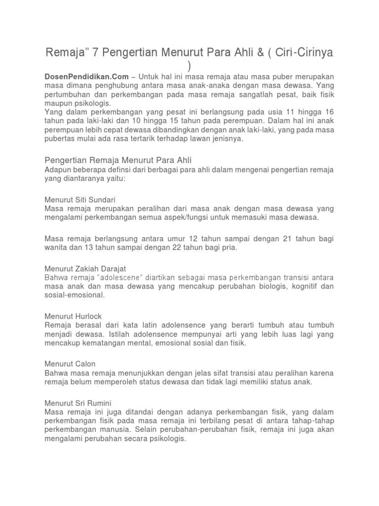 DOC) PENGERTIAN REMAJA | shinta arbiella - Academia.edu