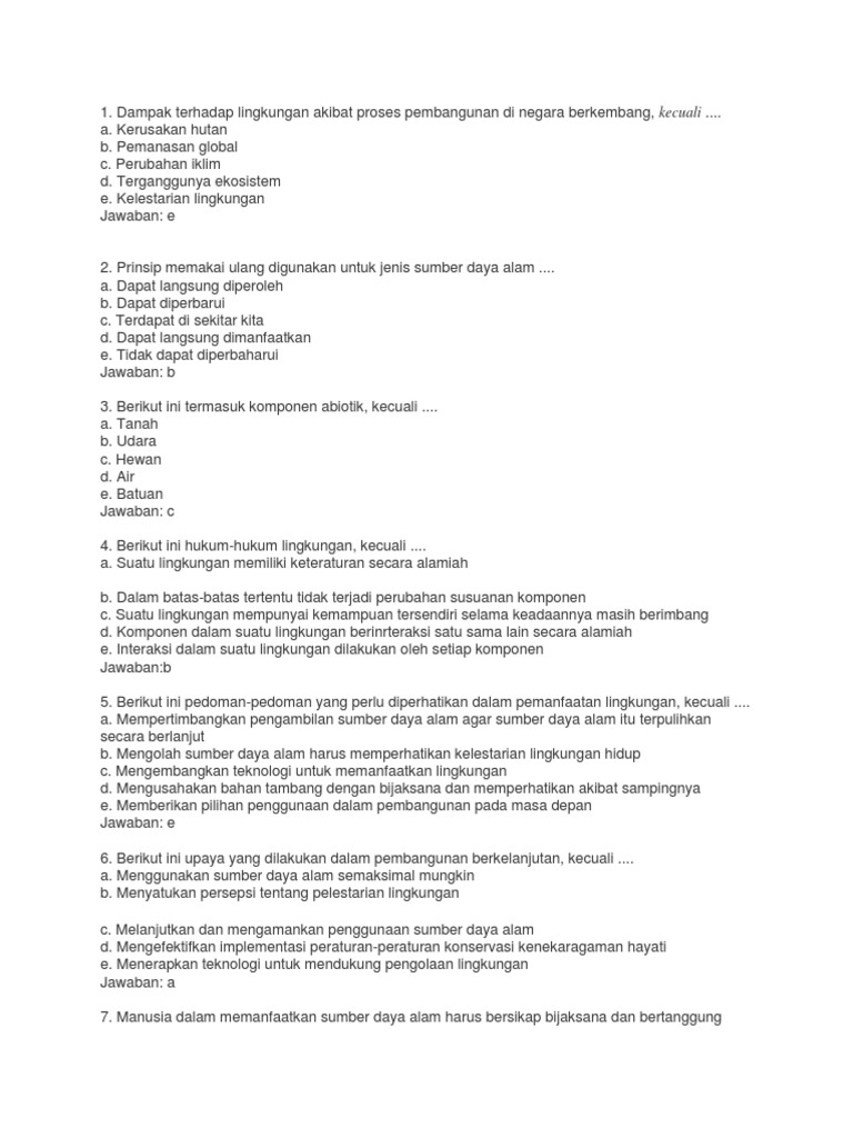 50 Soal Pelestarian Lingkungan Hidup dan Pembangunan Berkelanjutan dan Kinci Jawaban - Mendalami IPS