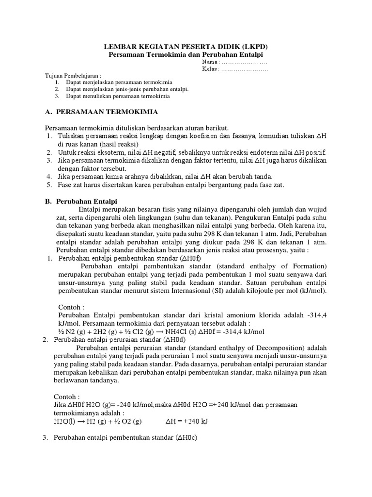 Lks Perubahan Entalpi Standar