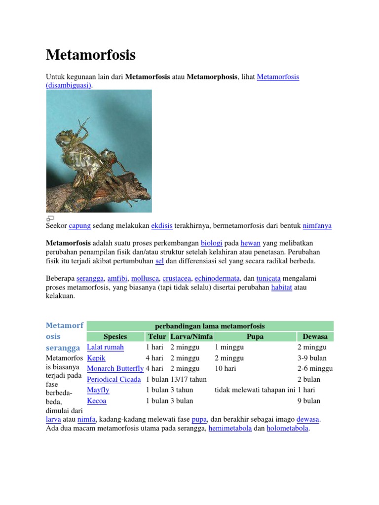Metamorfosis - Wikipedia bahasa Indonesia, ensiklopedia bebas