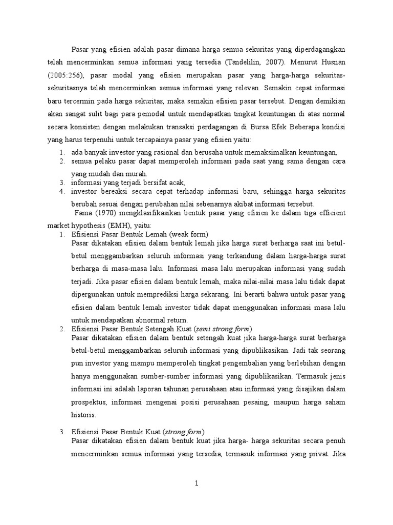 PDF) EKSPLORASI TINGKAT EFISIENSI PASAR MODAL INDONESIA STUDI KASUS DI BURSA EFEK INDONESIA