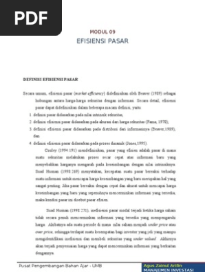 Pasar Modal Efisien manivest.docx - A PASAR MODAL EFISIEN Pasar modal efisien diartikan dengan cara yang berbeda dengan tujuan yang berbeda Pasar modal | Course Hero
