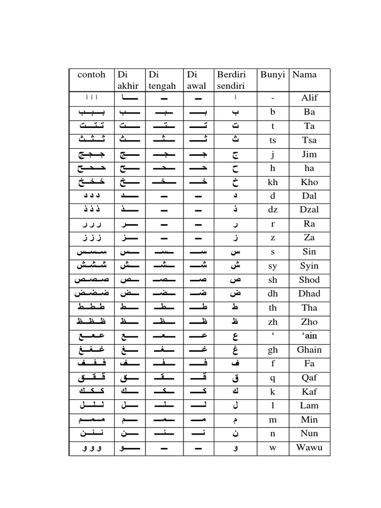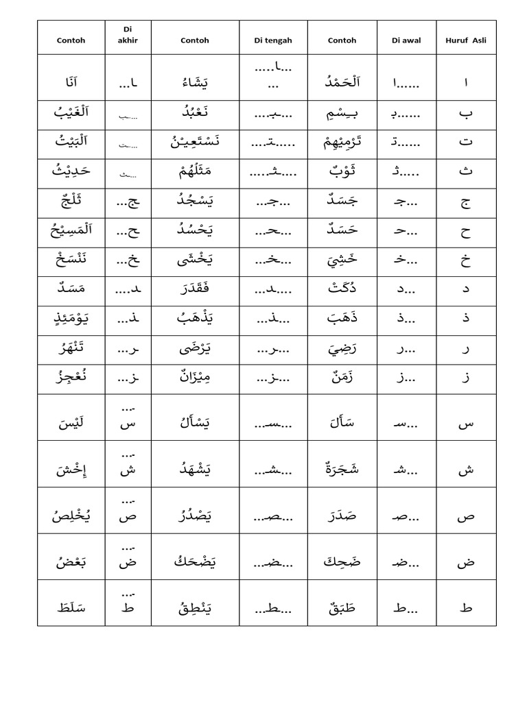 Tabel Huruf Hijaiyah Sambung | mulyana kuningan asri