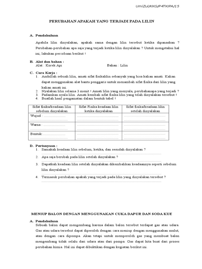 DOC) PERUBAHAN PADA PEMBAKARAN LILIN | Monika Tiara - Academia.edu