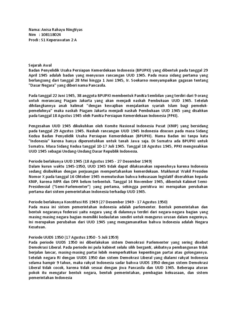 DOC) Sejarah Lahirnya UUD 1945 Negara Republik Indonesia | Rahma …