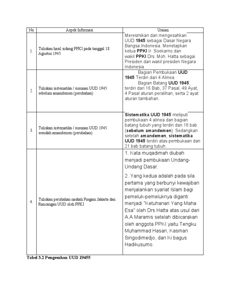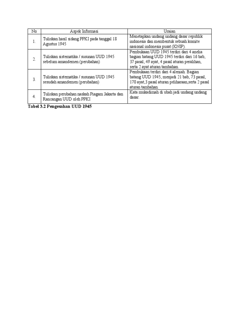 tabel 3.2 pengesahan uud 1945 Plisss - Brainly.co.id