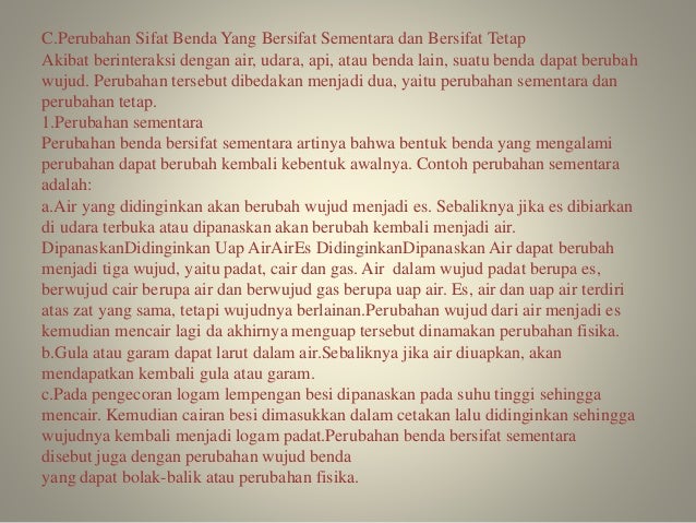 sebutkan 4 perubahan benda yang bersifat tetap dan sementara? - Brainly.co.id