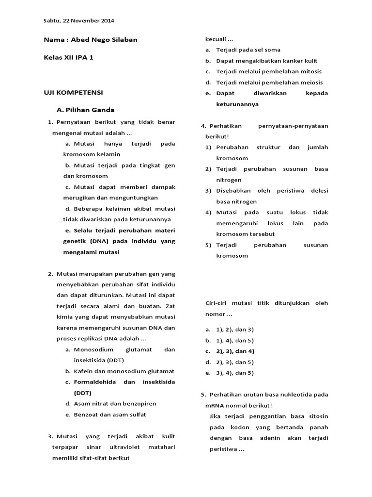 DOC) Soal Latihan Mutasi -2 | Dyah Safira - Academia.edu