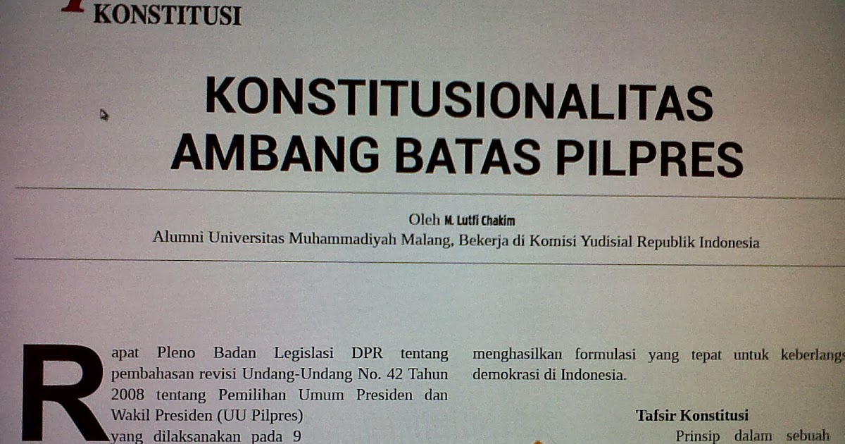 M Lutfi Chakim : KONSTITUSIONALITAS AMBANG BATAS PILPRES