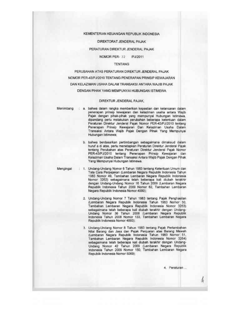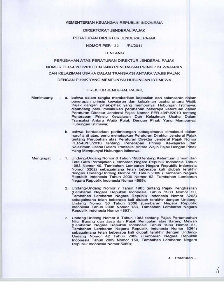 PER - 32.PJ_.2011 tg Perubahan PER-43.PJ_.2010 tg Penerapan Prinsip Kewajaran dan Kelaziman Usaha