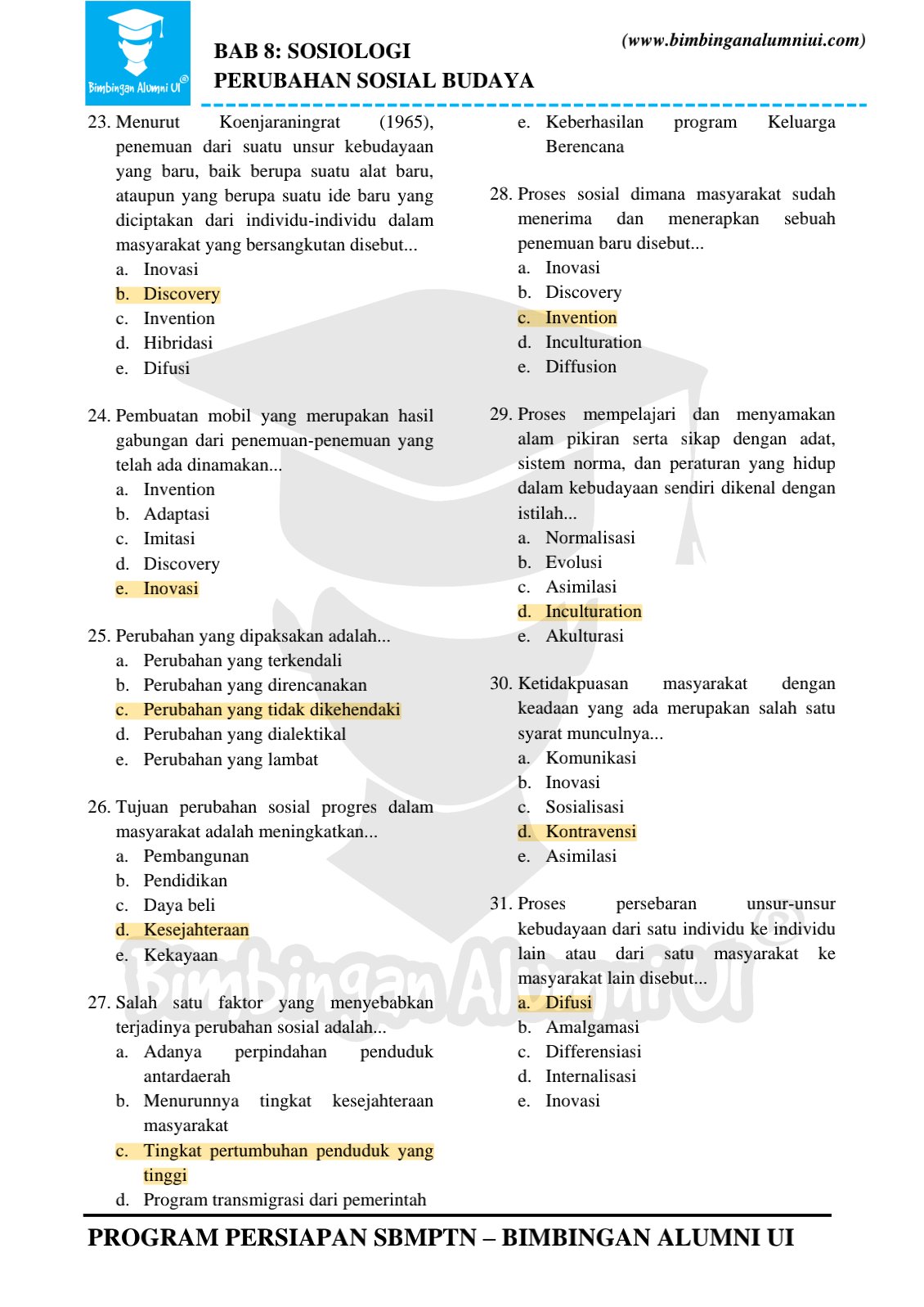 Mengerjakan PR: Soal Pilihan Ganda Perubahan Sosial Budaya